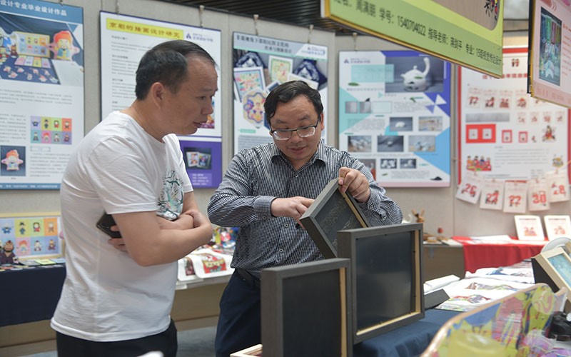 5月27日,艺术设计学院2019届毕业设计展开展,邵阳市委宣传部副部长赵应国,莅临润德楼展厅,参观指导。