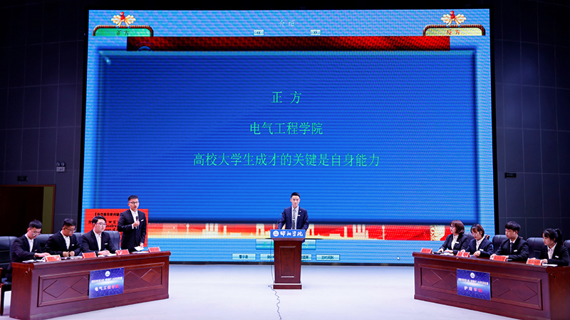 本届辩论赛从班级赛到决赛前后历时一个半月,19个学院之间先后进行辩论22场,线上线下活动覆盖学生2万余人次。每一场辩论赛都是一场智慧与口才的对决,每一场比赛都是思想与教育的引领,大家将辩论赛比喻为“文明的吵架,智慧的对抗”。本次决赛以“高校大学生成长的关键是自身能力还是外部环境”为辩题,季军争夺战在电气工程学院和护理学院之间,围绕“选择的能力与选择的方向”展开,“环境能带给我们什么”成为了双方争辩的焦点。通过语言的交锋来进一步引导新时代青年大学生要能从纷繁复杂的大环境中,依靠自身能力坚定选择方向,使自己早日成长成才。冠军争夺战由食品与化学工程学院和外国语学院,双方则围绕“内化于心的过程属于能力还是环境?”展开激烈辩驳,辩手们用语言的魅力及出色的临场表现调动观众的情绪,共同深思能力与环境哪一个更重要。辩手们时而引经据典、时而以史喻今、时而旁征博引、时而诙谐幽默,将现场氛围一度推向高潮,掌声此起彼伏,经久不停。最终食品与化学工程学院摘得桂冠,外国语学院、电气工程学院和护理学院分获亚军、季军和殿军;政法学院范昕玥获得了本届辩论赛的“最佳辩手”称号。