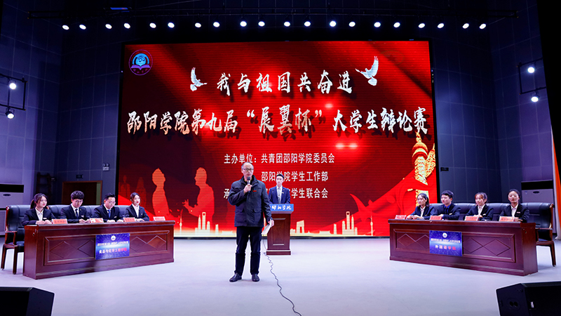 12月18日晚,由校团委、学工部主办,校学生联合会承办的邵阳学院第九届“展翼杯”大学生辩论赛决赛于逸夫楼图书报告厅圆满落幕。本场比赛特邀邵阳市朗诵艺术协会会长王牛老师,我校辩论赛专家评审团则由莫飞平老师、贺翀老师、袁文华老师、唐光怀老师、易佑斌老师、张伟强老师七名专家老师担任评委,校党委委员王玉林受邀出席,全校近千名同学现场观看。