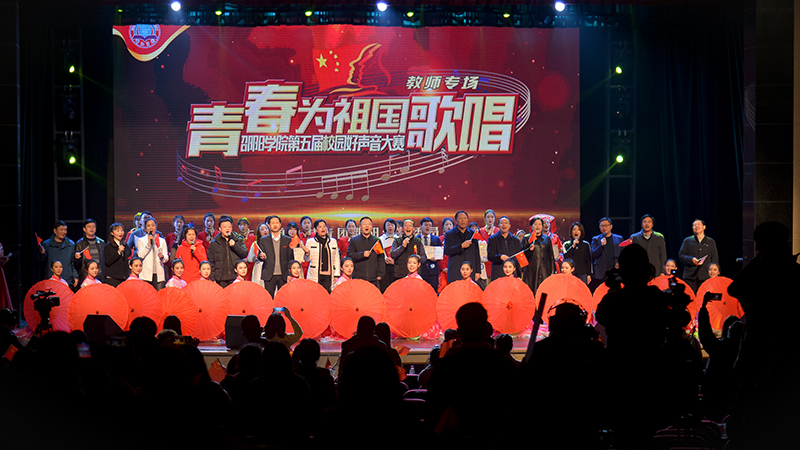 “五星红旗迎风飘扬,胜利歌声多么响亮!”伴随着全场齐唱的慷慨激昂的歌声,邵阳学院第五届校园好声音教师专场总决赛于22日晚,在李子园校区星光剧院圆满落下帷幕。