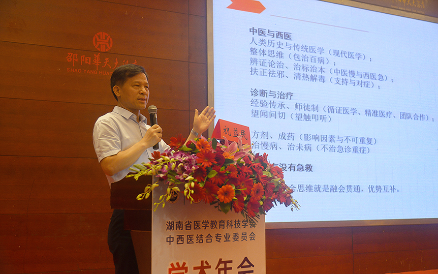 会上,国内25位知名专家、教授出席,240多名来自全省各中医医院、西医医院、中西结合医院及邵阳市区、基层医院及高等院校的代表和学员参加会议。会议围绕中西医结合思维在医学教育、临床医疗以及科研技术中的应用、中医药在综合性医院的临床应用等议题展开了为期两天的深入交流与广泛探讨。