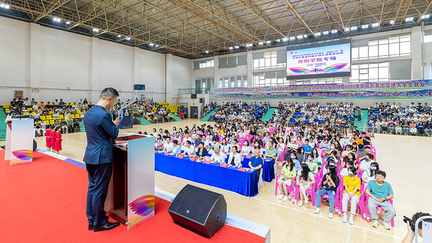 5月20日,由湖南省教育厅和共青团湖南省委主办,湖南省大中专学校学生信息管理与就业指导中心,邵阳学院、共青团邵阳市委、邵阳市人力资源和社会保障局承办的湖南共青团促进大学生就业“金桥行动”暨邵阳学院2023届毕业生夏季校园供需见面会在我校体育馆举办。现场举行了湖南共青团促进大学生就业“金桥行动”邵阳学院专场启动仪式,同时来自湖南省就业引航宣讲团的专家们为现场的毕业生围绕就业观念引导、就业政策解读和就业技能辅导开展专题宣讲。共青团湖南省委二级巡视员邓资益、邵阳市副市长蒋伟、学校党委书记宁立伟、学校党委委员、副校长赵敏丽出席活动。