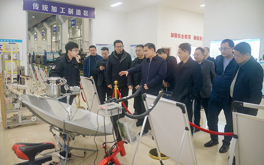 在机械工程训练中心先进加工制造区,学生们正在操作机器开展实训活动,易洪海到现场观摩教学、实操成果,多角度、多层次了解智能制造、先进技术攻关、学生创新创业、竞赛等情况。他走进电气实训楼创新实验室,听取机器人技术研发、实用新型专利发明情况介绍。