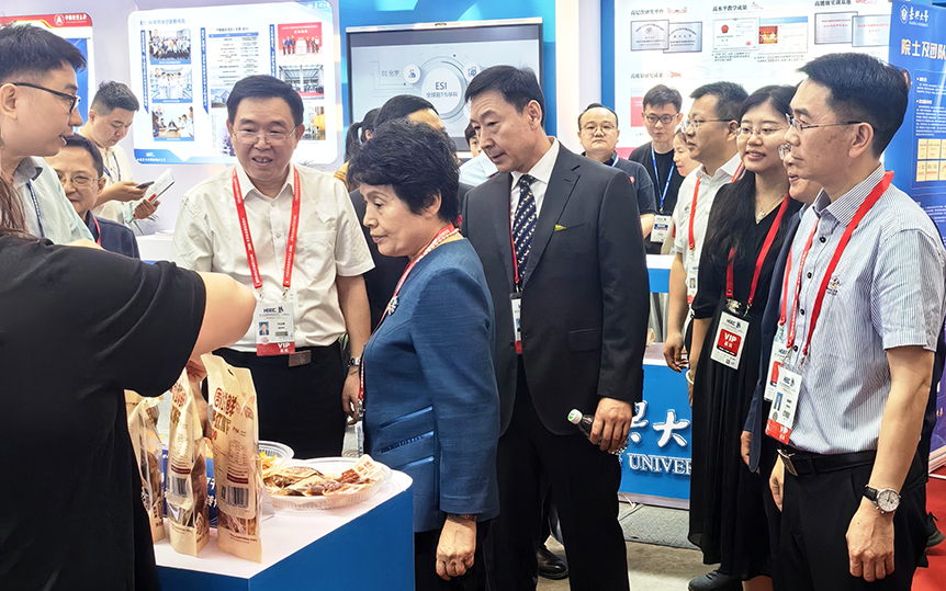 本届高博会以“职普融通·产教融合·科教融汇”为主题,服务教育、科技、人才“三位一体”协同发展,主体活动主要由“展览展示”和“高质量学术交流活动”两大板块构成。学校结合学科专业特色和此次科技成果展涉及的产业布局,全面梳理了近年来取得的一批有较高显示度的标志性成果,分豆制品加工与安全控制湖南省重点实验室、“邵阳红”公共品牌研究院和开源全数字多电机驱动控制教学科研实验平台三大板块,展示了豆酸汤、低温杀菌休闲豆干、泡菜专用菌种、早安隆回茶叶礼盒设计样品、邵阳红硒粮三珍礼盒样品、湘窖酒厂红钻酒样品等14个产品。通过精心设计的参展展板和实物展示,着重展示了我校在学科建设、科学研究、社会服务、科技成果转化等方面的办学成就。