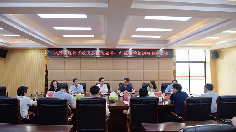 6月14日,为进一步加强教学医院建设,深化医教研协同发展,北京航天总医院党委书记、院长戴天然、副院长甘丰、科技委主任苏康等一行6人莅临学校。学校党委副书记、校长张平出席,普爱医学院(医学部)党政主要负责人、两所附属医院院长参加,会议由省双一流学科、专业临床医学负责人李金成教授主持。