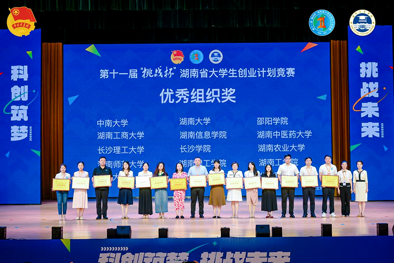 6月24日,第十一届“挑战杯”湖南省大学生创业计划竞赛终审决赛在湖南长沙落下帷幕,经过激烈角逐,我校再次获评“优秀组织奖”,并首次捧得该赛事省级“优胜杯”,选送的12项作品全部获奖!其中金奖5项、银奖2项、铜奖5项,取得该赛事历史最好成绩!