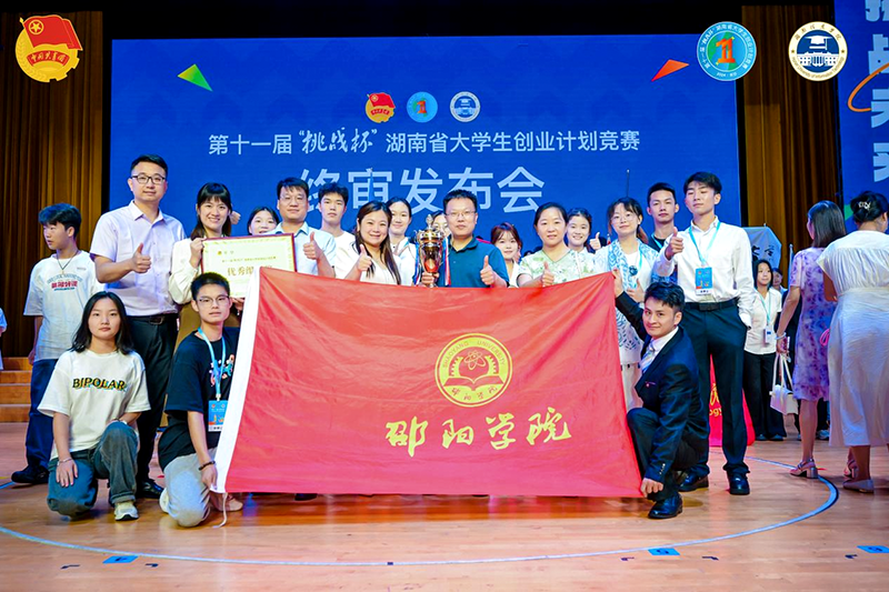 据悉,“挑战杯”创立于1989年,挑战杯中的大学生创业计划竞赛被称为“小挑”,每两年举办一届,是一项旨在引导和激励大学生通过广泛的社会实践、深入的社会观察,增强对国情社情民情的了解,从而激发大学生的创新精神,培育创业意识,提升创业能力的重要赛事。本届赛事由共青团湖南省委、湖南省教育厅、湖南省人力资源和社会保障厅、湖南省科学技术协会、湖南财信金融控股集团有限公司、湖南省学生联合会共同主办,共分为科技创新和未来产业、乡村振兴和农业农村现代化、生态文明建设和绿色低碳发展、文化创意和区域交流合作和社会治理和公共服务五个赛道,共吸引了超过100所高校的20万余名师生参赛,809件作品入围省赛,参赛作品数较上届增加50%,创历届之最。经过激烈的角逐,中南大学以本科组团体总分第一名的成绩荣获大赛最高荣誉“挑战杯”,邵阳学院以本科组团体总分第三名的成绩和湖南大学等10所高校荣获“优胜杯”,5个优秀项目获得团省委提供的资金扶持和金融支持,邵院青年们用优秀的表现展示了敢于创业、奋发有为的使命担当和青春风采。