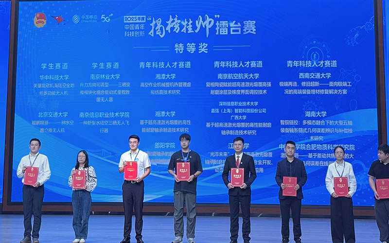 近日,2025年度中国青年科技创新“揭榜挂帅”擂台赛“高端装备领域”主擂台赛在长沙县委党校落幕。我校机械与能源工程学院代表队凭借项目“高温耐磨轴承的超高速激光熔覆涂层材料设计及应用”,从全国121所高校302支团队中脱颖而出,荣获特等奖。这是我校首次在“挑战杯”“揭榜挂帅”赛道中斩获最高奖项。