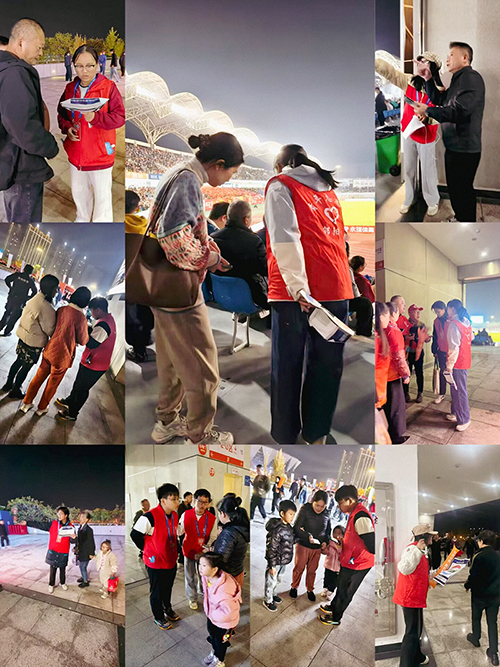 看台上万头攒动,应援旗浪翻涌成海,巨型横幅在日光与灯光里舒展着“城市英雄”的热望。而邵阳学院的志愿者们早已身披红马甲,候在检票口、通道旁,将青春的热忱,提前织进了这场绿茵盛事的筹备里。