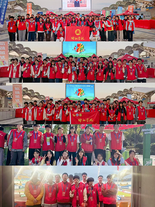 赛事间隙的广场上,“邵阳学院”的红旗在红马甲间扬起。镜头里,汗湿的发梢沾着微风,带笑的眼角映着赛场的光,胸前的志愿者证晃成细碎的星——这是300余名志愿者的集体群像,是并肩站在岗位上的默契,是以青春赴使命的骄傲。