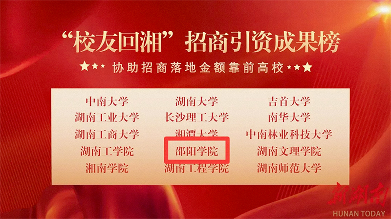 硕果激励前行,初心昭示未来。学校将以此次佳绩为沃土,精耕“校友回湘”这片希望田野,汇智聚力,引凤还巢,与校友同心同向,为现代化新湖南的宏伟蓝图持续赋能添彩。