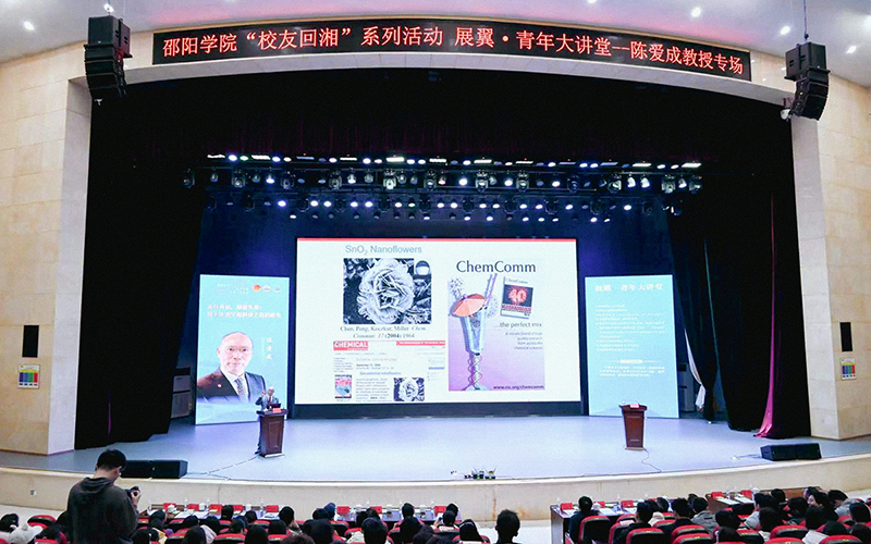 陈爱成以《志存高远,脚踏实地:四十年求学和科研之路的思考》为题,分享了自己从邵阳师专化学科出发,任教、考研、赴加拿大奎尔夫大学自费留学,深耕电化学领域四十年的求学科研历程。他详细讲述了在厦门大学、加拿大奎尔夫大学的科研攻坚与成果突破,以及在电化学、纳米材料、能源环境科学等领域的开创性成果。结合自身经历,他剖析了当代大学生面临的经济压力、就业匹配等挑战,并寄语青年学子:大学教育的核心是促进人的全面发展,要兼具独立思考、专业能力与社会责任感,做到志存高远、脚踏实地,以持之以恒的坚守奔赴目标。