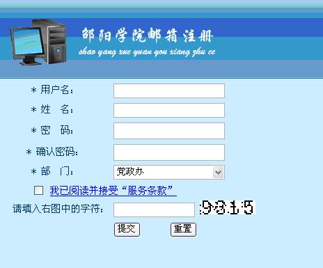 4、 部门一栏,教师选择所在单位,学生选所在系,否则不能正确申请。所有申请邮箱须经过管理员审批,三日内生效,请申请人自行查证。